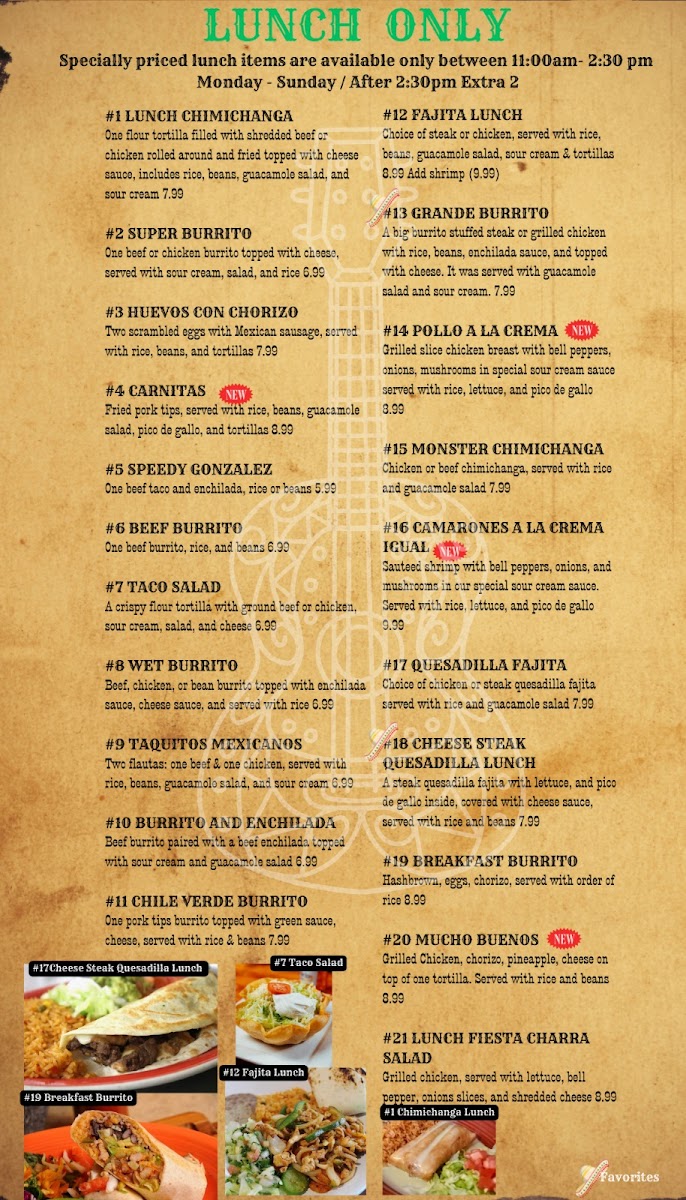 If you are in search of a place that offers not just good food but a great experience, then Fiesta Charra is definitely worth the drive. Whether you intend to feast at the buffet or sample our vast menu, you are guaranteed an outcome that will fill your heart and plate alike. Prepare for a meal that not only satisfies but is also a treat for the senses—just remember to bring a designated driver, as you may find yourself in a delightful food coma on the way home!